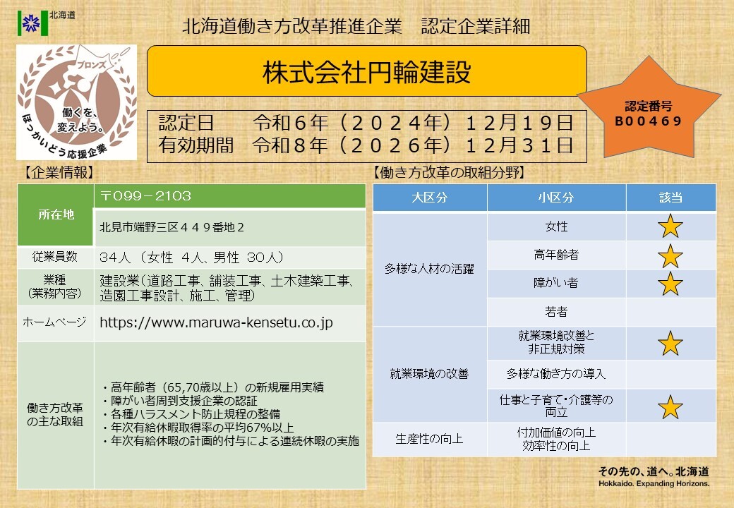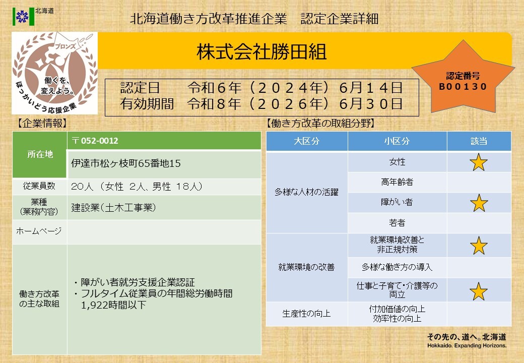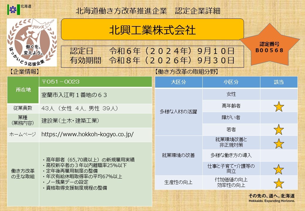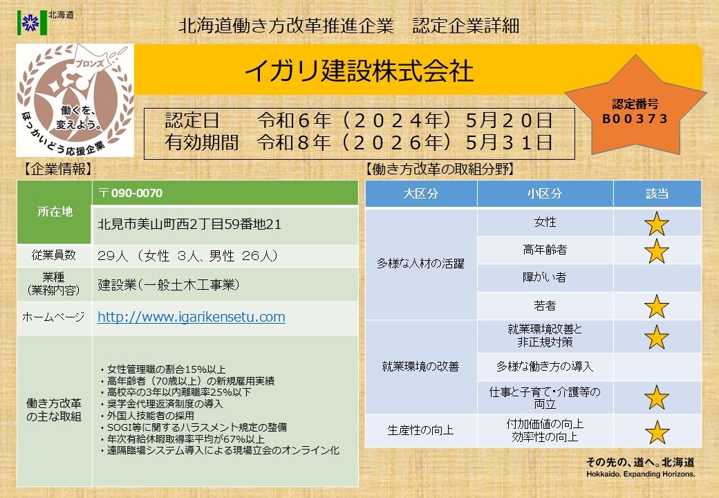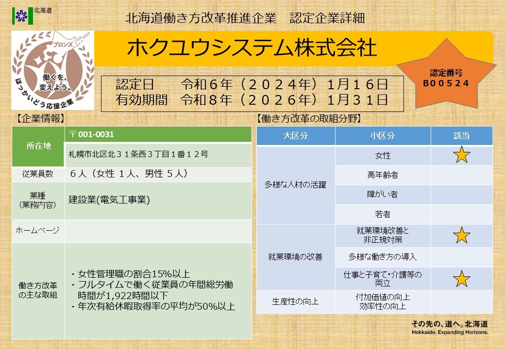 北海道働き方改革推進企業ブロンズ認定企業一覧