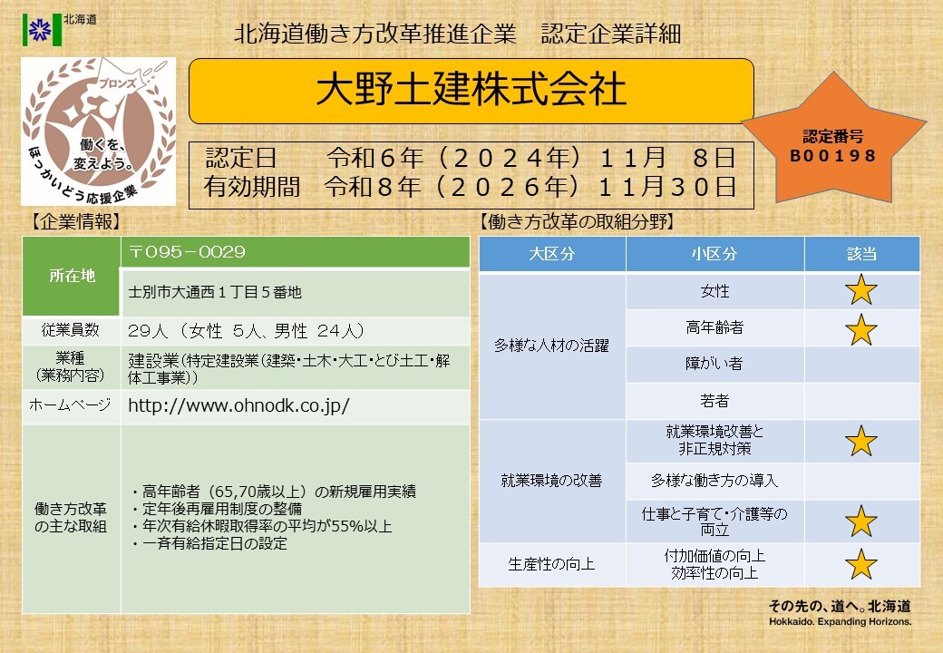 B00198 | 大野土建株式会社 | 士別市 | 詳細 |