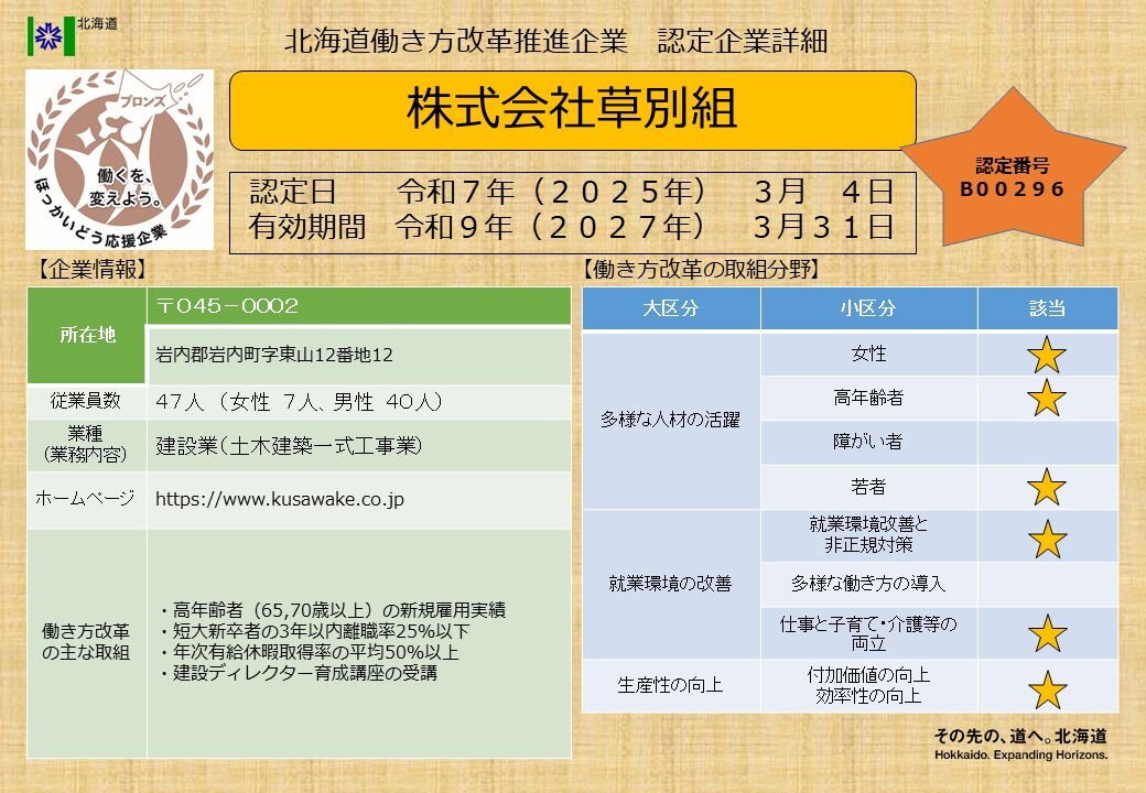 B00296 | 株式会社草別組 | 岩内郡岩内町 | 詳細 |