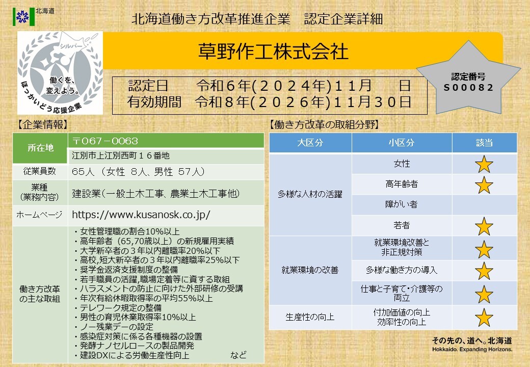 S00082 | 草野作工株式会社 | 江別市 | 詳細 |