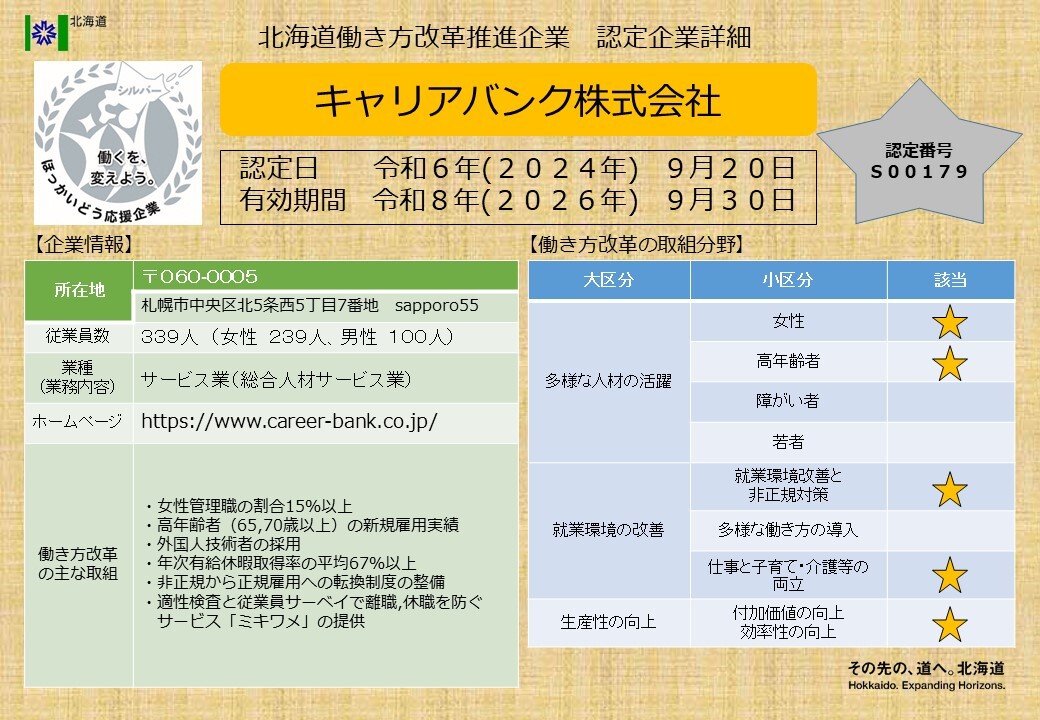S00179 | キャリアバンク株式会社 | 札幌市 | 詳細 |