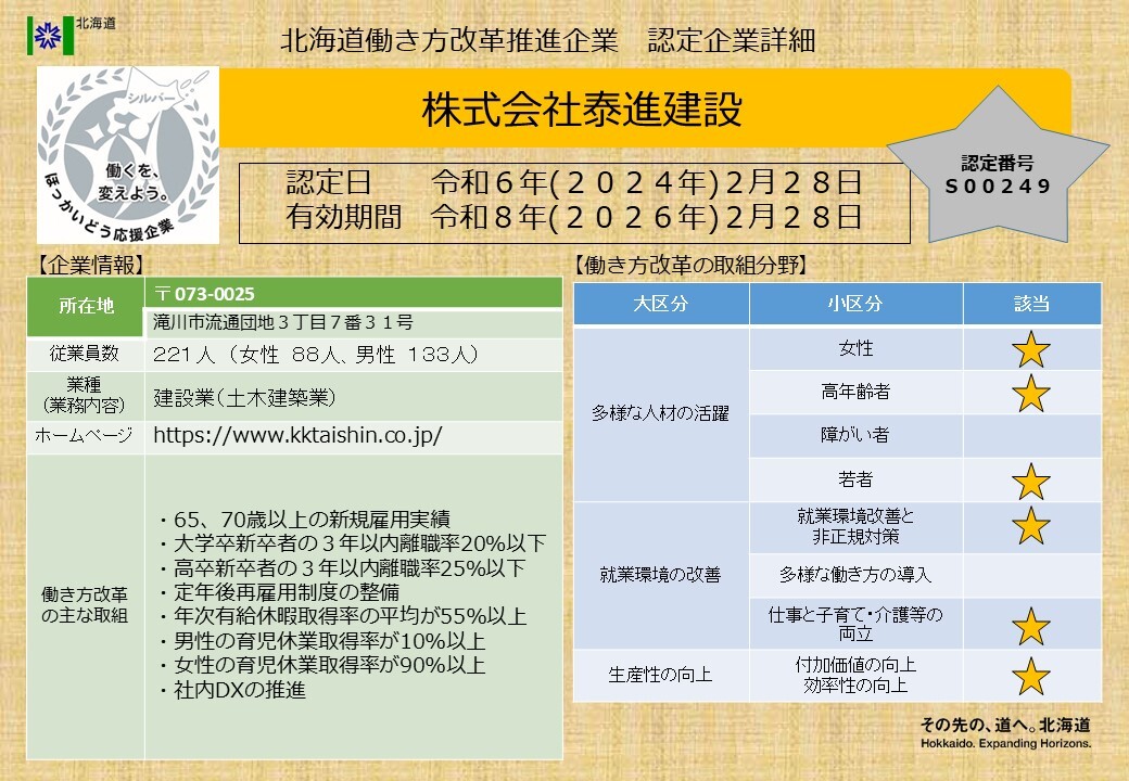S00249 | 株式会社泰進建設 | 滝川市 | 詳細 |